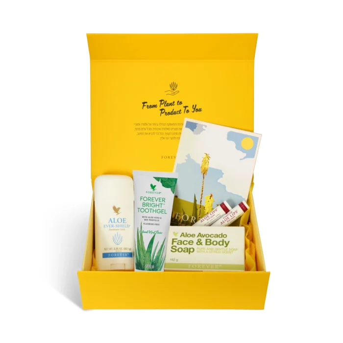 מארז מדויק של מוצרי FOREVER באריזת מתנה. מוצרים שהם חובה בכל בית ושימושיים לכל גיל.