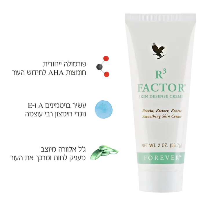 לאחר ניקוי העור, מרחו ”פקטור R3 ”על הפנים, הצוואר ובמידת הצורך על אזורים נוספים. לתוצאות מיטביות – מרחו בבוקר ובלילה.
